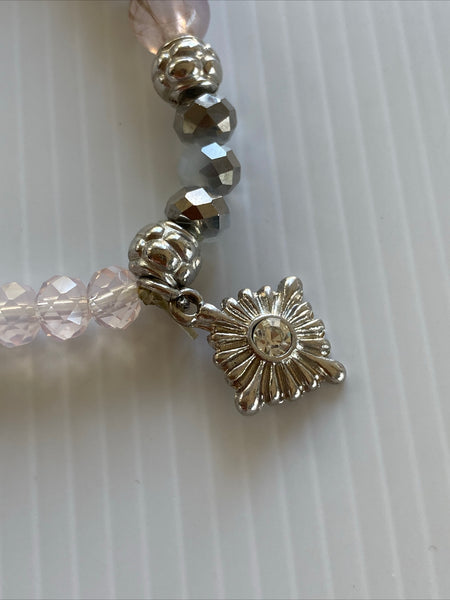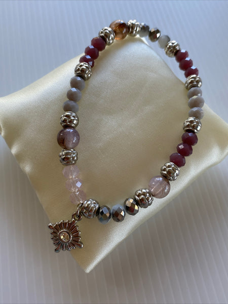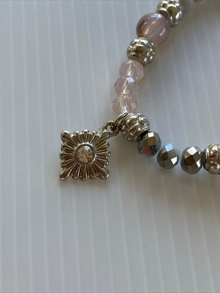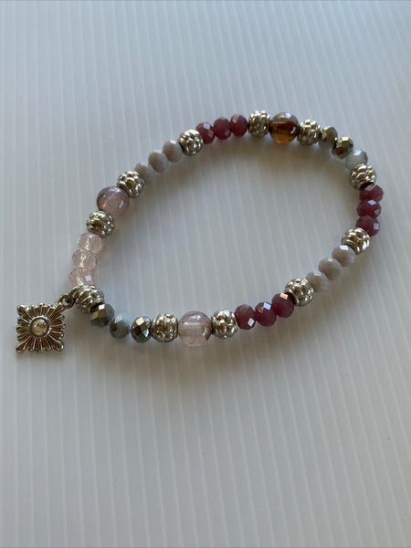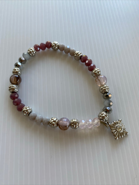 Purple, Lilac and Silver Beaded Stretch Bracelet Star Charm