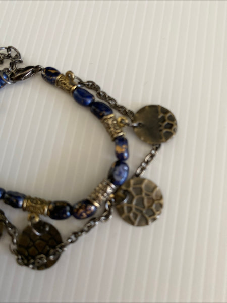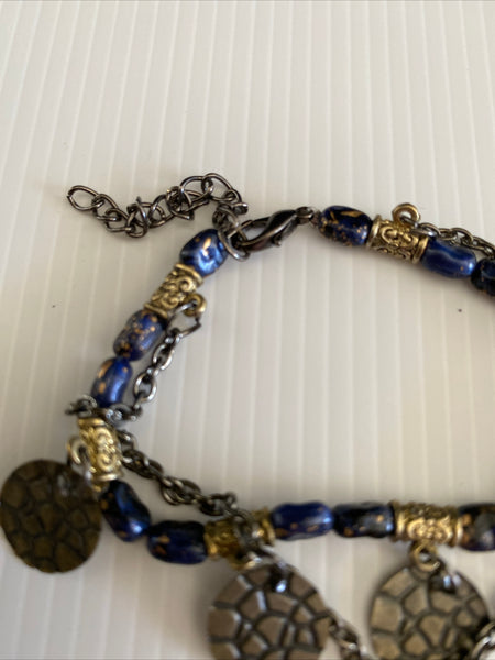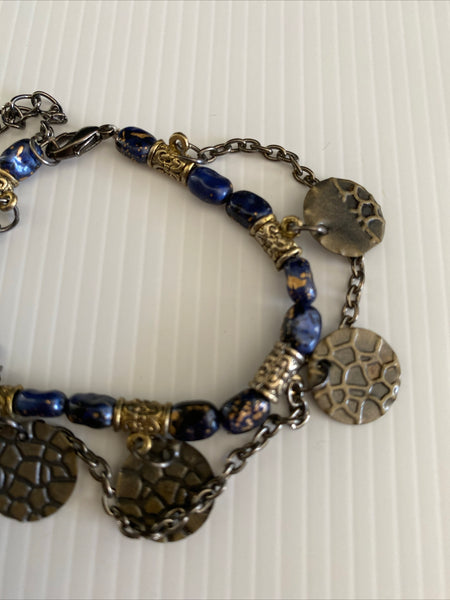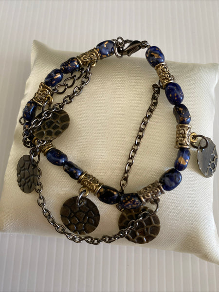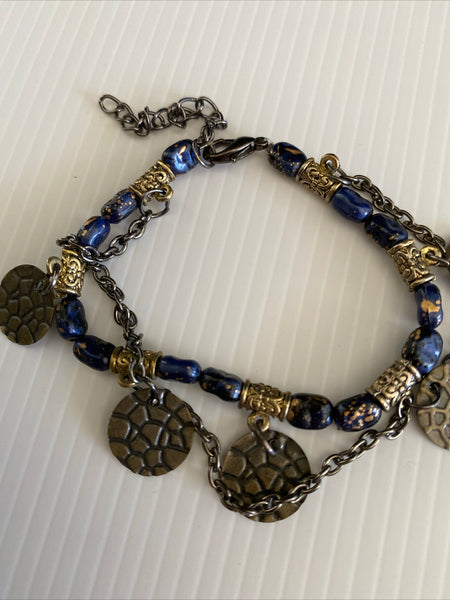 Bead & Charm Bracelet Extension Chain Navy & Bronze tone