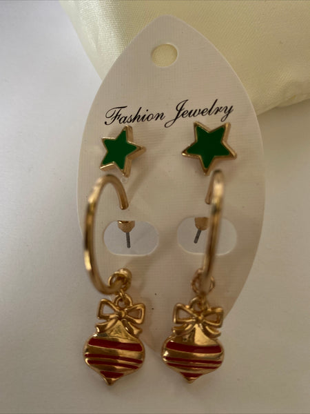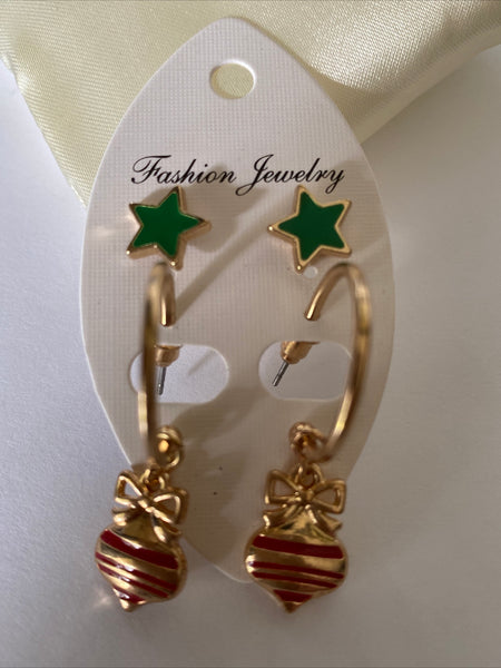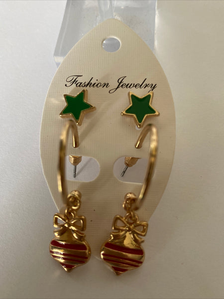 Christmas Star & Bauble Twin Set Earrings Pierced Gold Plate Festive Twin Set