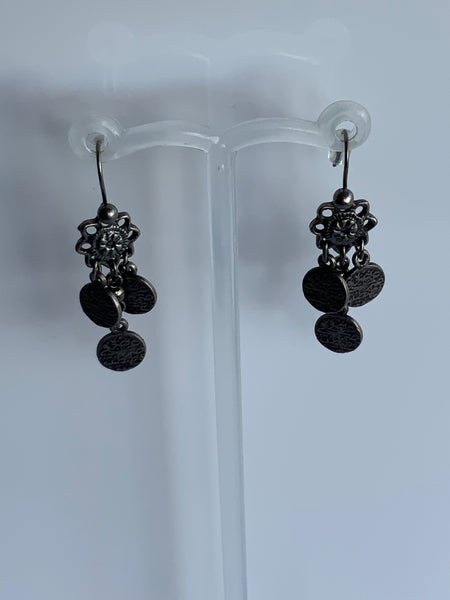 Small Bronzetone discs suspended from a Flower Bronzetone Charm.