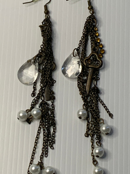 A Delicate Glass Pearl dangles down from the Heart Rose Pendant Drop on each of those charms.