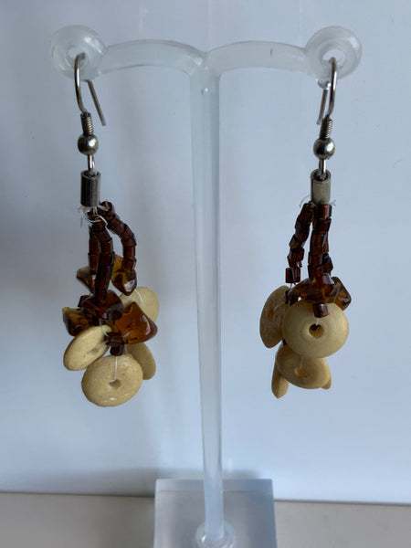 The Light Tan Disc compliment the Brown Dark Amber tube Beads.