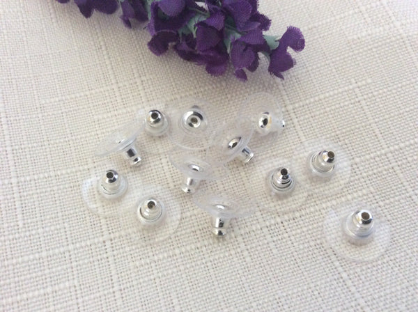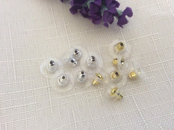 Bullet style backing with acrylic round disc for Pierced Stud earrings to keep them firmly in place.