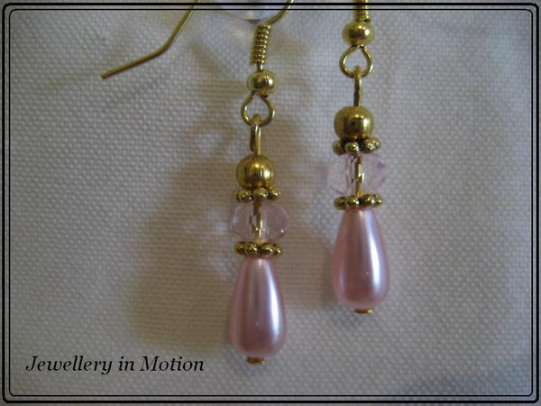 A lovely pair of Delicate Pale Pink Pearl Teardrop  pink Crystal Rondelles Earrings to add to your Jewellery Collection.