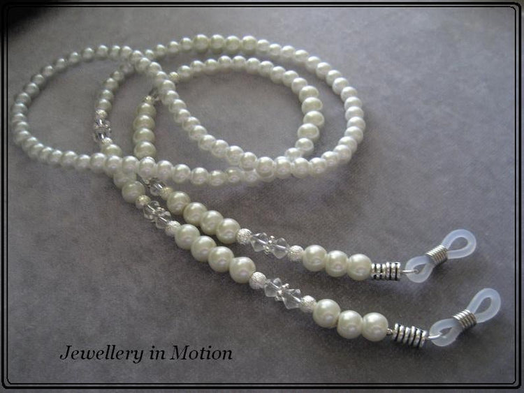 White Glass Pearl Reading Eye Glass, Sunglasses, Spectacle Chain Beaded Holder