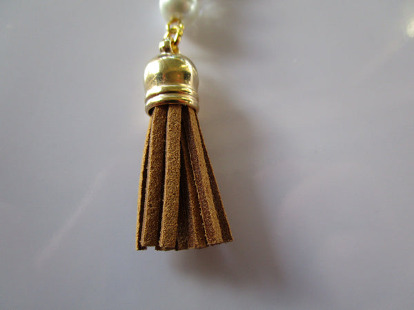 A 3.5 cm Tan / Brown Suede Tassel with an assortment of Crystals finish off this