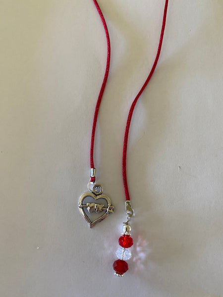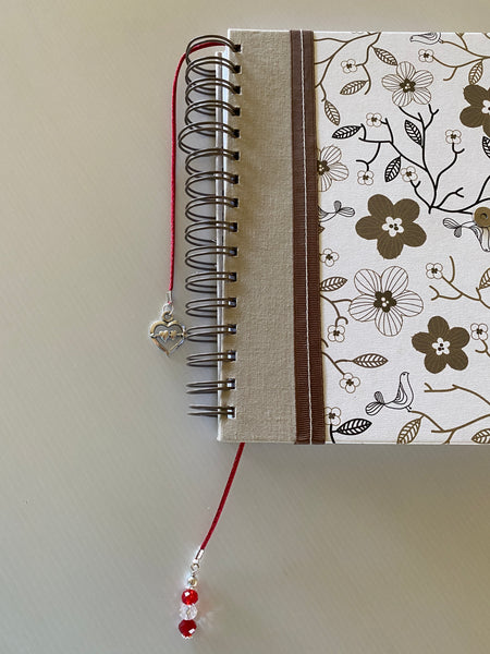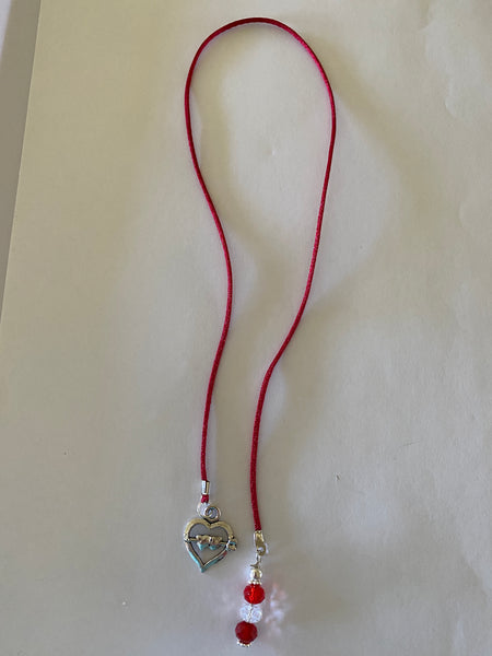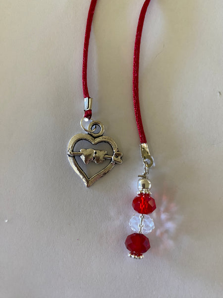 Beaded Book Mark or Book Thong with Silvertone Hearts