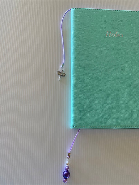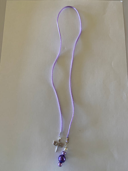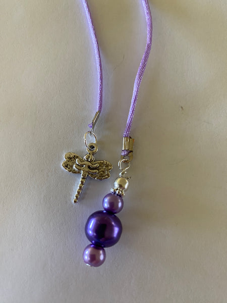 Purple Silk cord Dragonfly Charm & Glass Pearls