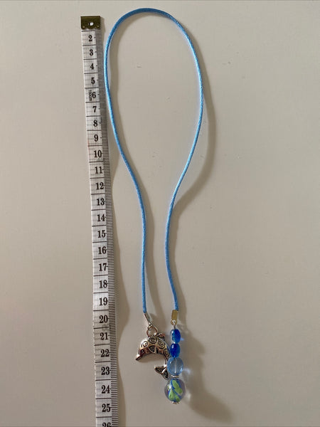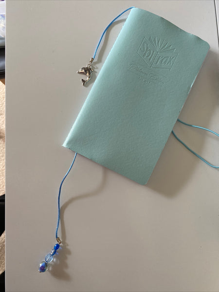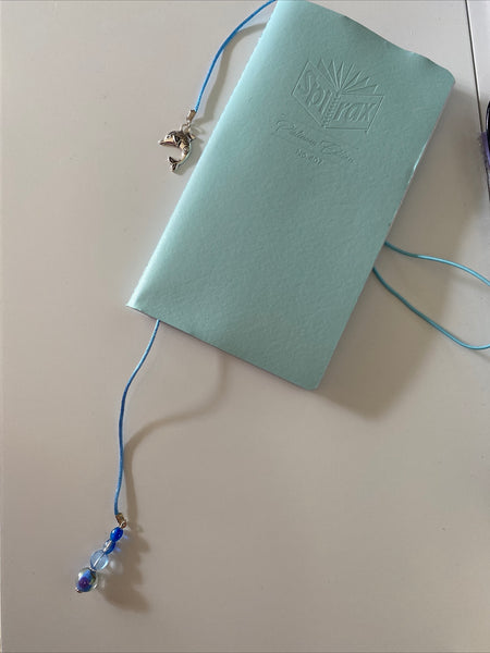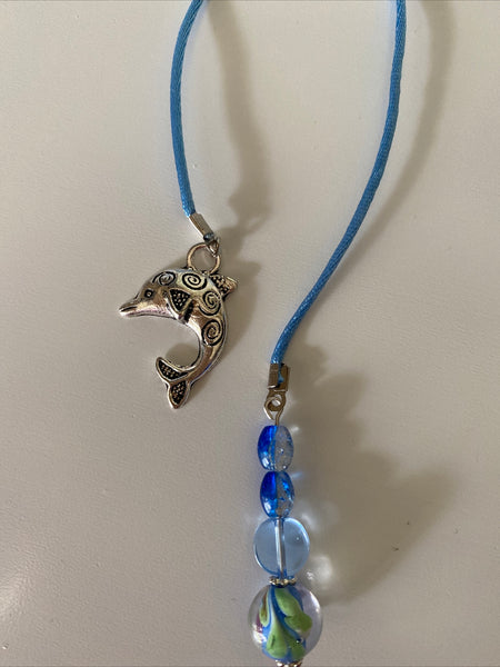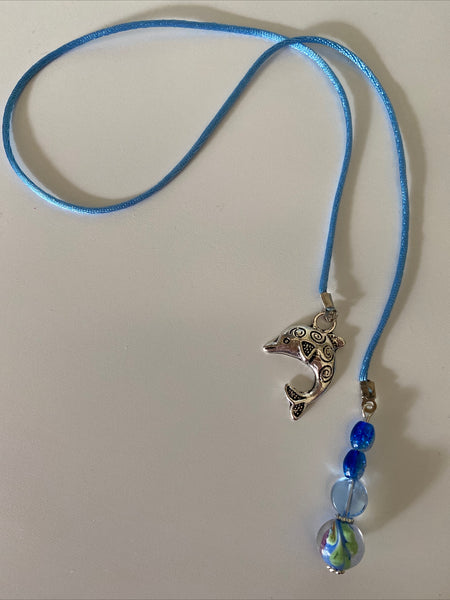 Beaded Book Mark or Book Thong with Silvertone Tibetan Dolphin