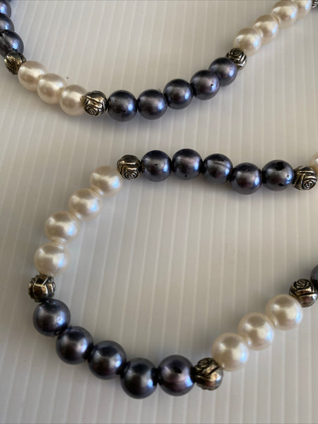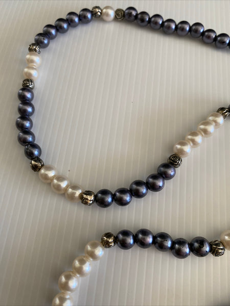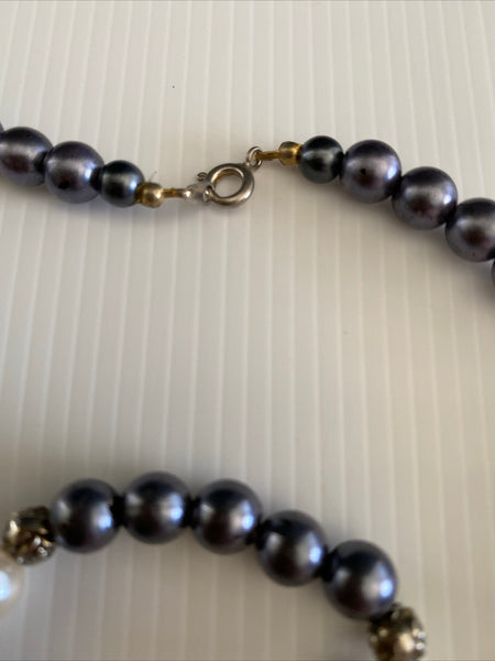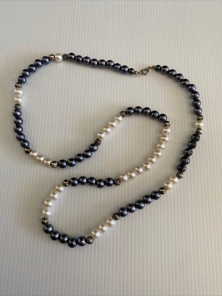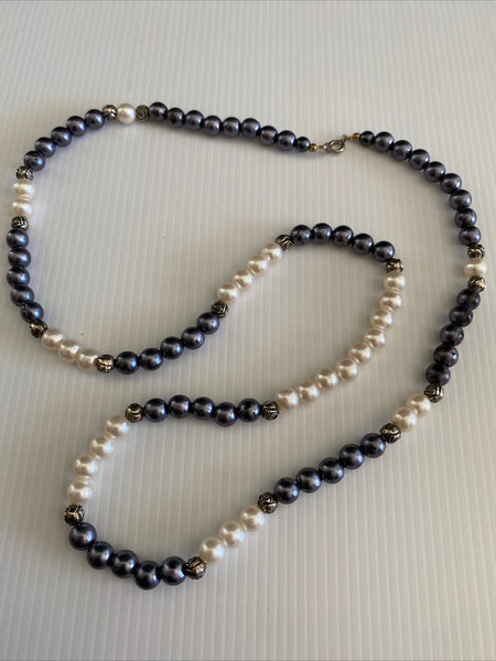 Gorgeous Long Glass Pearl Necklace with Spring Closure.