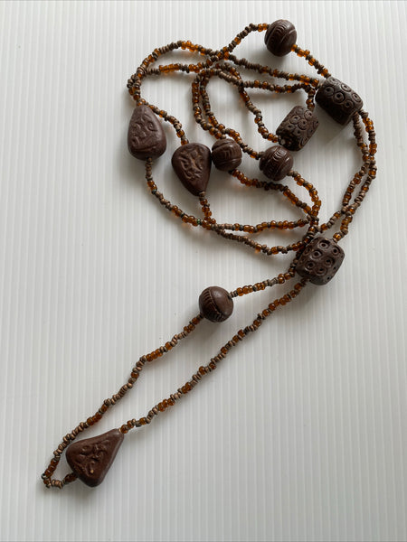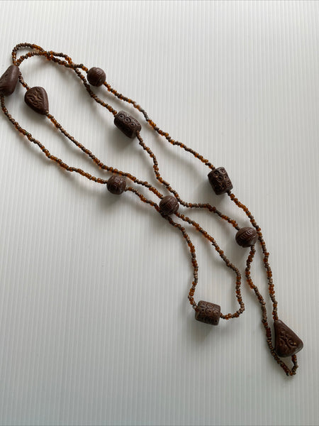 Simple, Classic and Classy Brown Bead Long Necklace slide over.