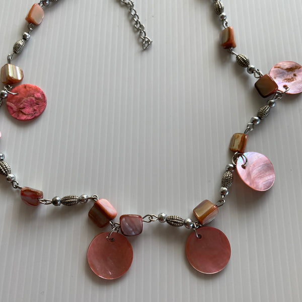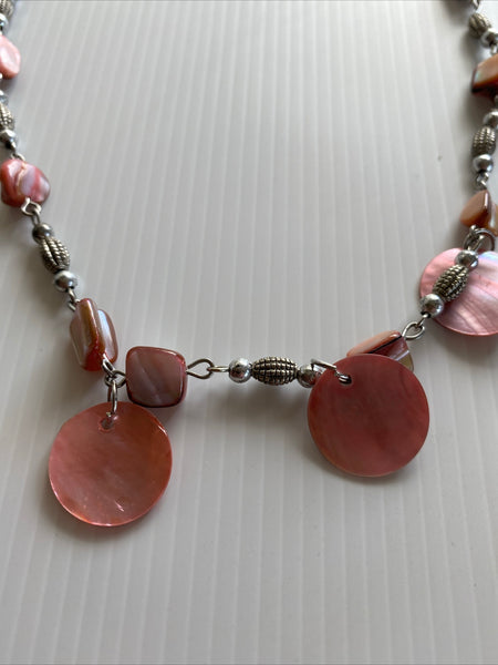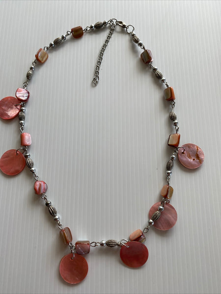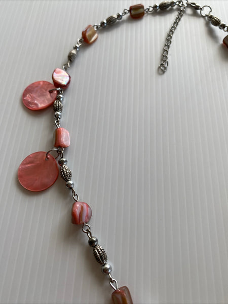 - Silver Tone Beads with Pink Peach/ Coral Colour Feature Beads down the length of the Necklace.
