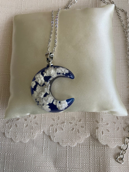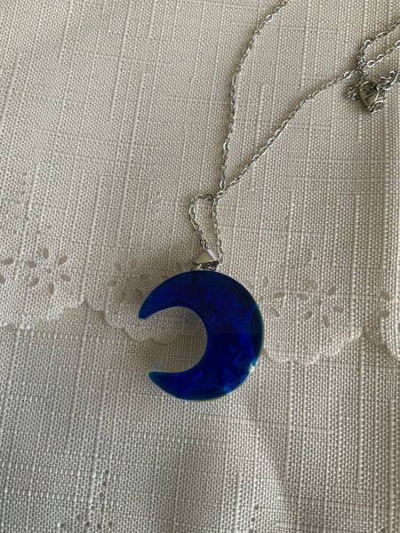 Half Moon Pendant Necklace Epoxy with Cloud Flakes Pendant on Fine Link Chain