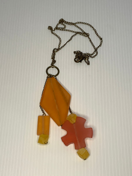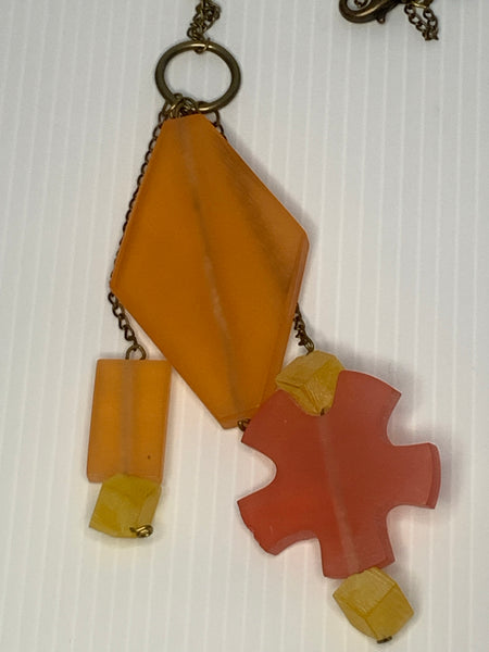 The Plastic Shape Pendants in Orange, Coral and a Light Orange are lightweight and add a lovely dimension to the Necklace Focal point.