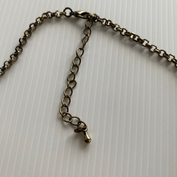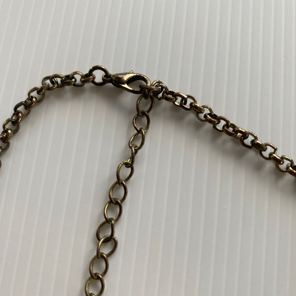 Short Antique Look Bronze tone Chain Necklace Focal Classic Oval