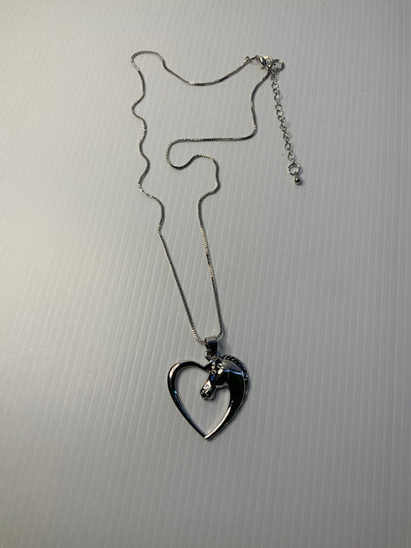 Silver tone Heart Shaped Horse Pendant Fashion Necklace Equestrian