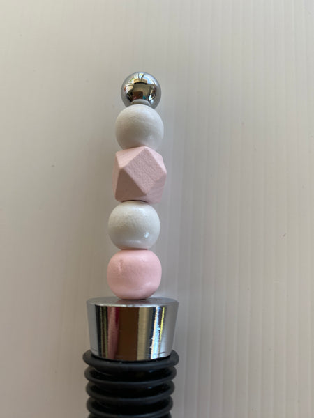 A combination of Silicone round and hexagon beads in pink and White tones.