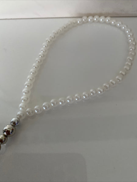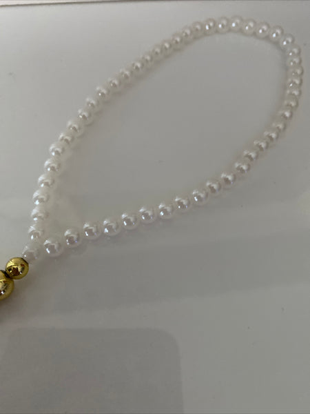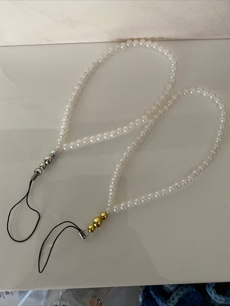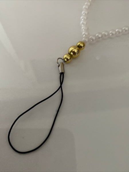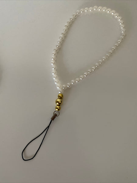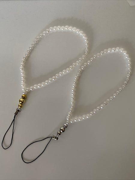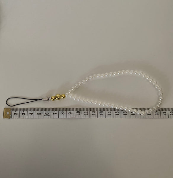 Acrylic White Pearls have been used for the wrist strap with an assortment of either Silver or Gold Plate Beads to finish off the wrist Strap.