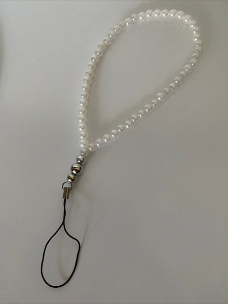 Mobile Phone Beaded Wrist Strap White Pearl Wrist Wrap Lightweight Handmade
