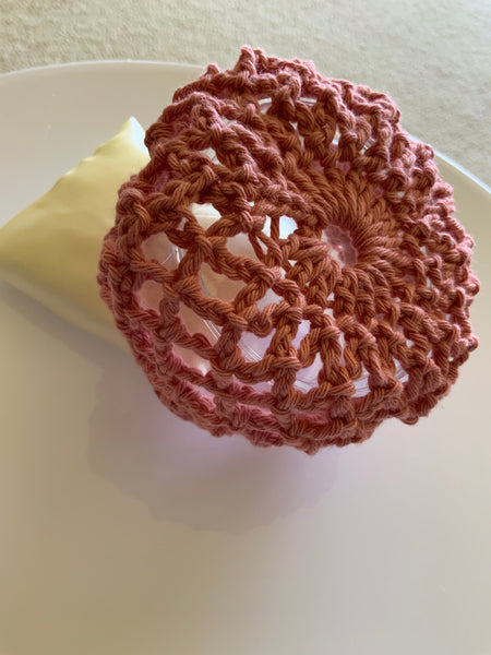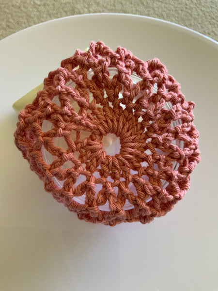 Crochet Hair Bun Net for Dance, Ballet, Horse riding -Handmade- Rose Pink