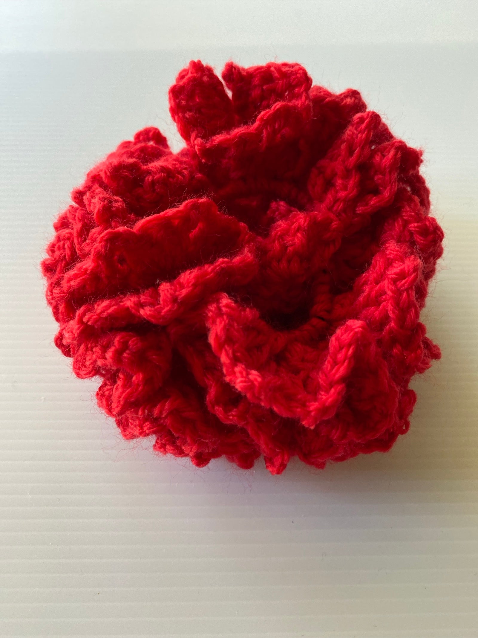 Hair Scrunchie Crochet Handmade Elastized Full Ruffled Bright Red