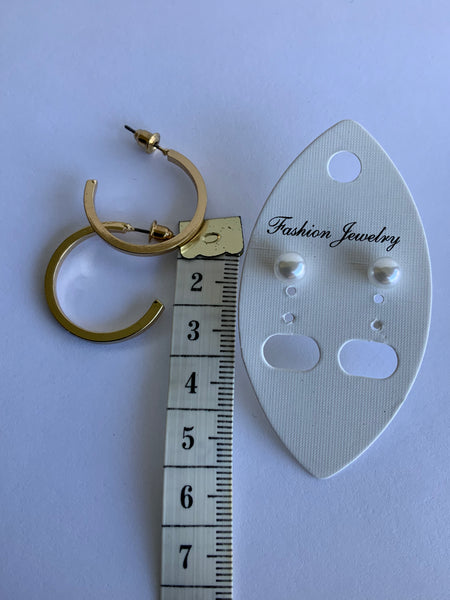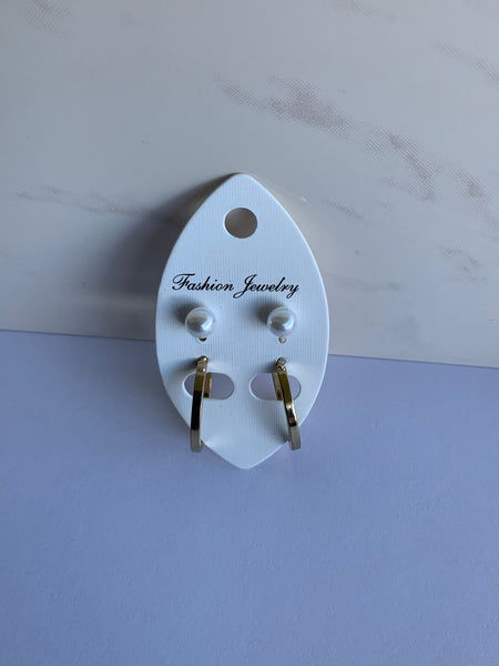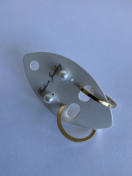 Duo Set Pearl Stud and Gold Plated Hoop Earring Set