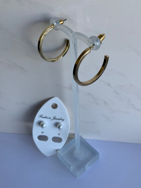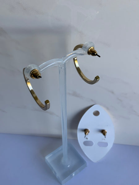 The Gold Plated open ended Hoops with Post and Bullet Backing for ease of putting and taking off.
