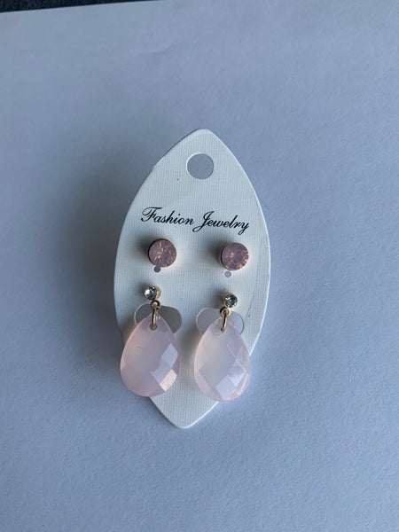 Duo Set Gold Plated Stud and Rose Pink Faceted Teardrop Earring Set.