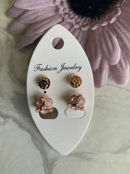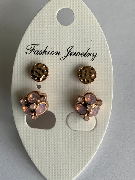 Duo Set Rose Gold Plated Stud Earring Set
