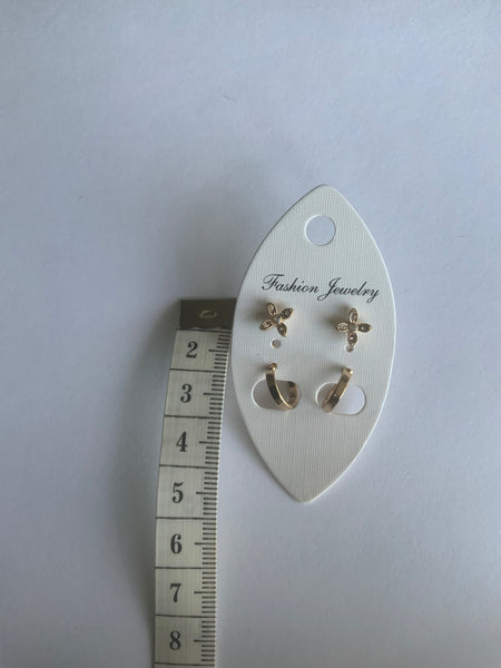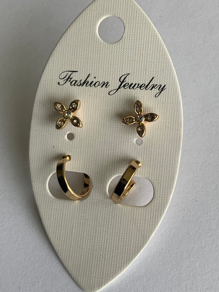 Duo Set GoldPlated Rhinestone Flower Stud and Gold Plate open ended Hoop Earring Set.