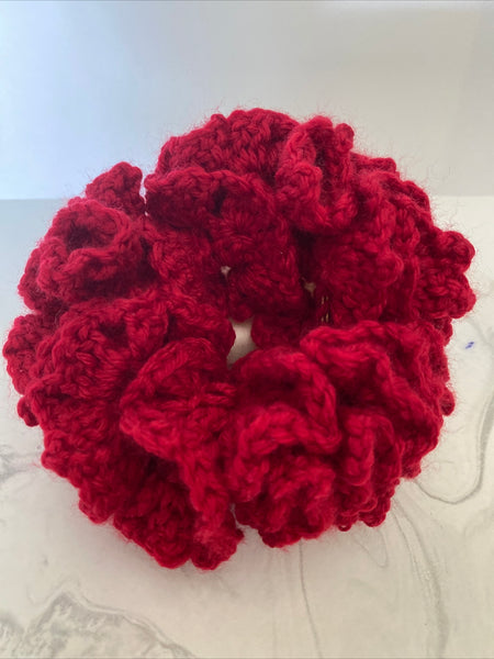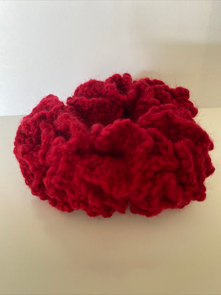 Hair Scrunchie Crochet Handmade Elastised Full Ruffled Deep Red Christmas Festive
