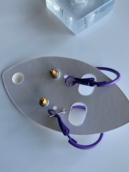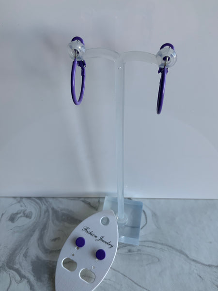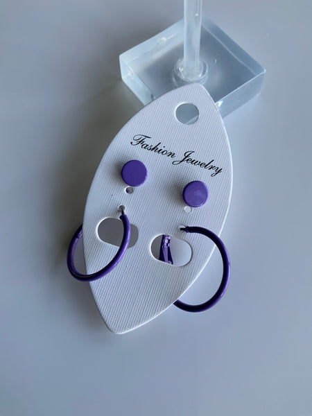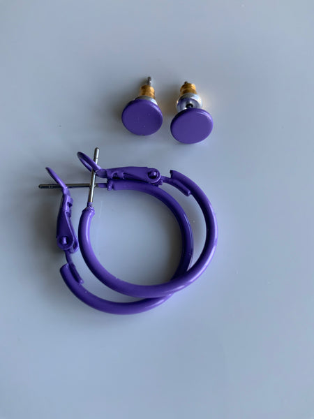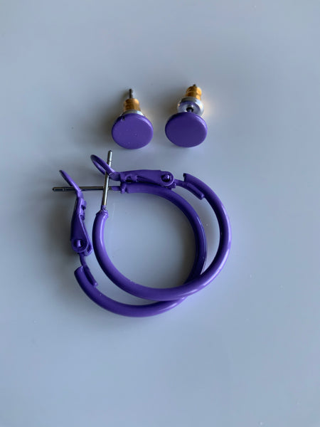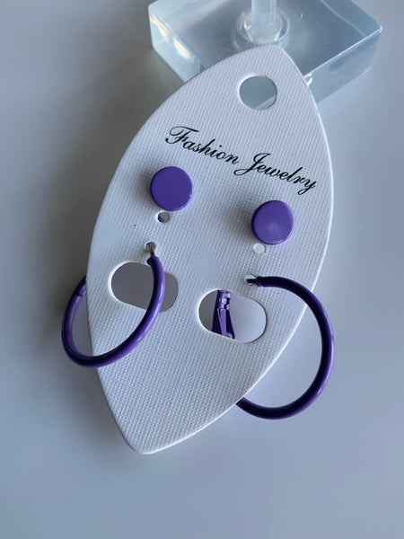 Set of 2 Purple Hoop and Round Stud Pierced Earrings.