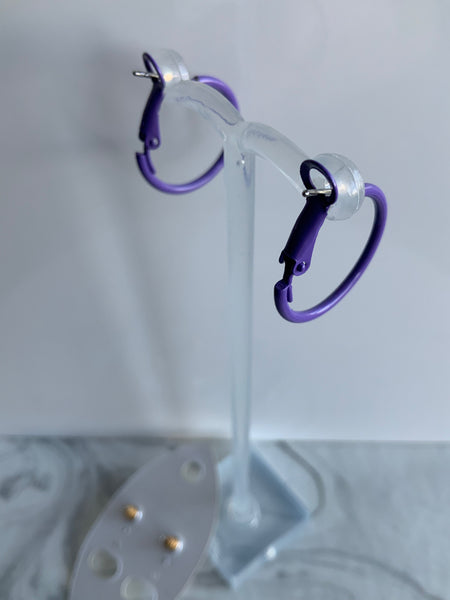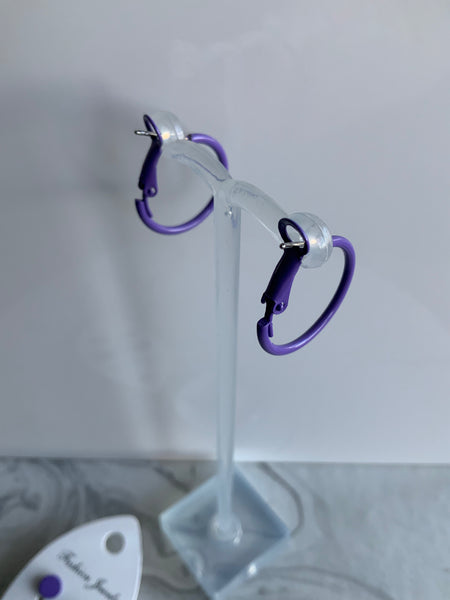 The Thin Purple Hoop Earrings are approx:-    2.5 cm drop,They are 2mm in width.