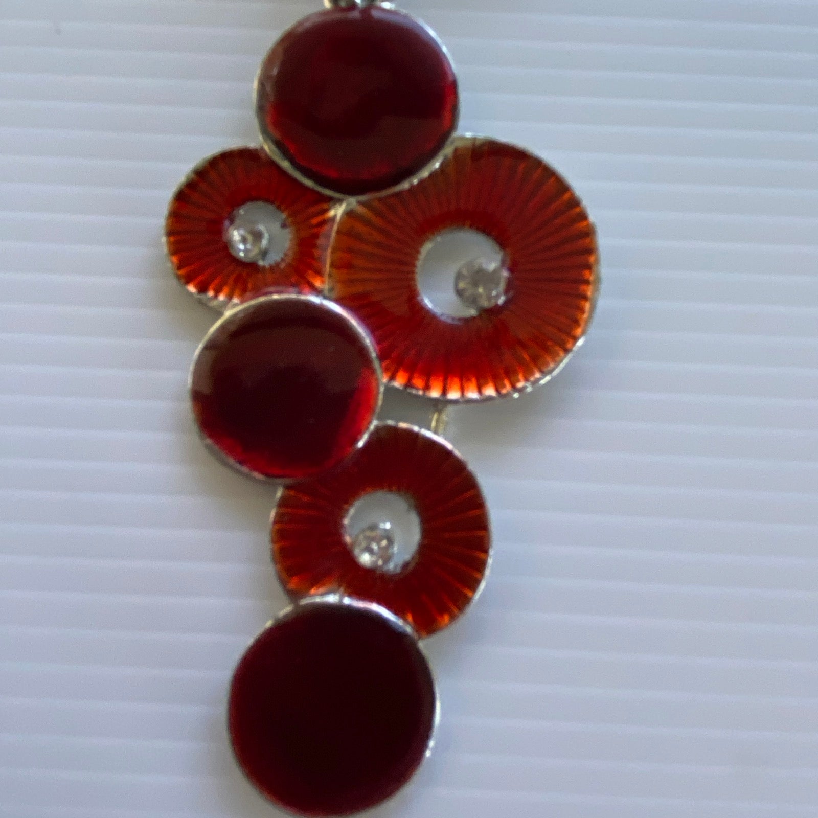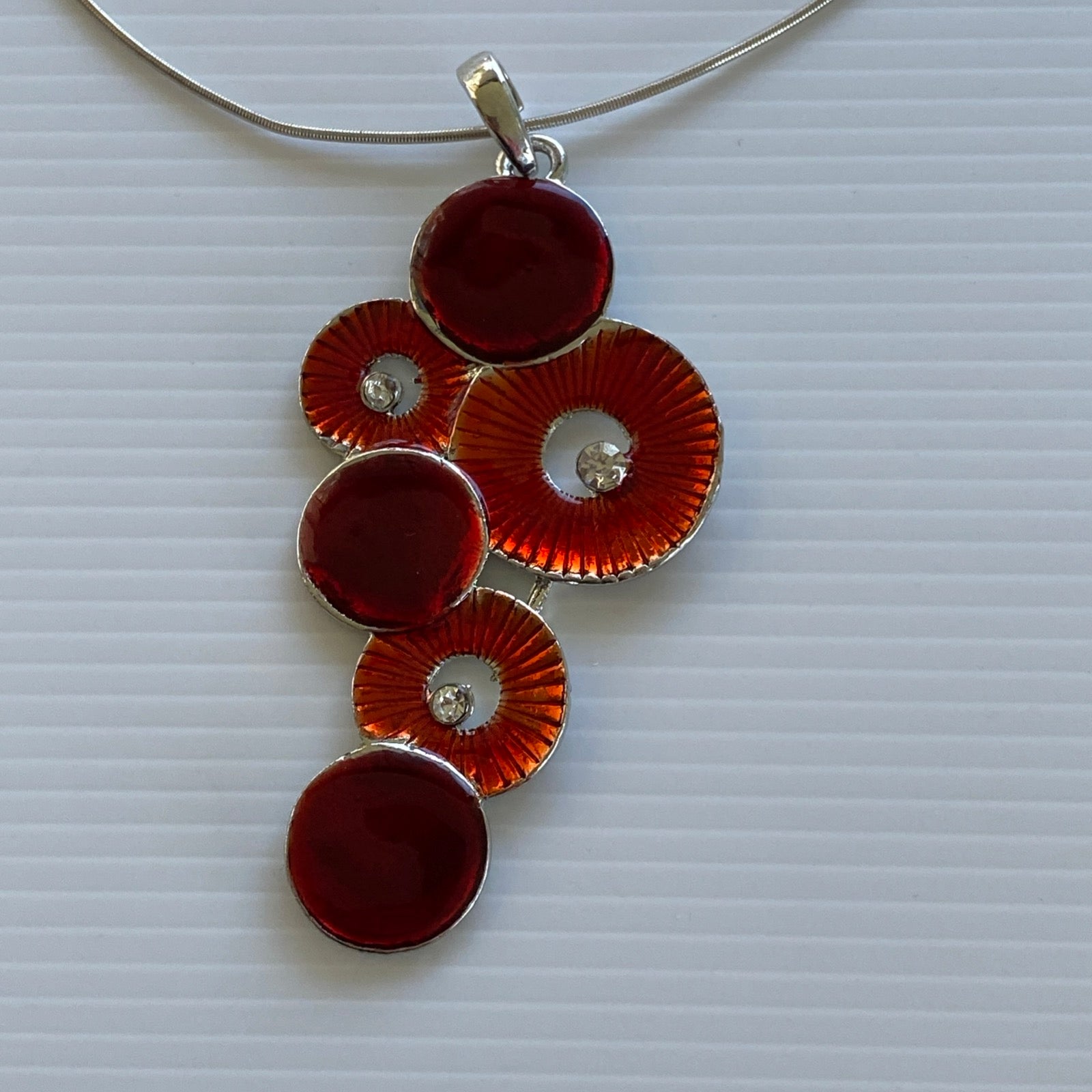 Retro Style Round Red Pendant with Diamantes on Silver Plate Necklace